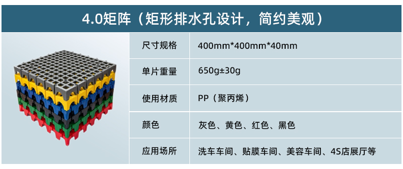 1.貫穿式鎖扣設計,每片可單獨取出,拆裝方便省力。 2.矩陣式直排大通道支撐,可實現(xiàn)免拆沖洗清理淤泥。 3.大孔徑透泥污功能強,更適用于預洗工位。 4.矩形排水孔設計,簡約美觀。 5.色彩豐富,可設計性強。